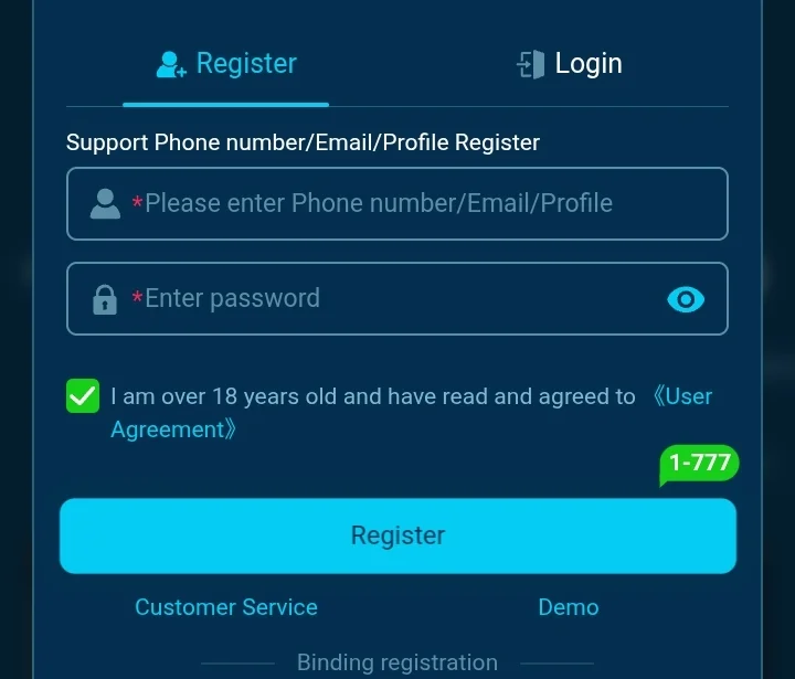 - After installation, open the app and click on the register button.